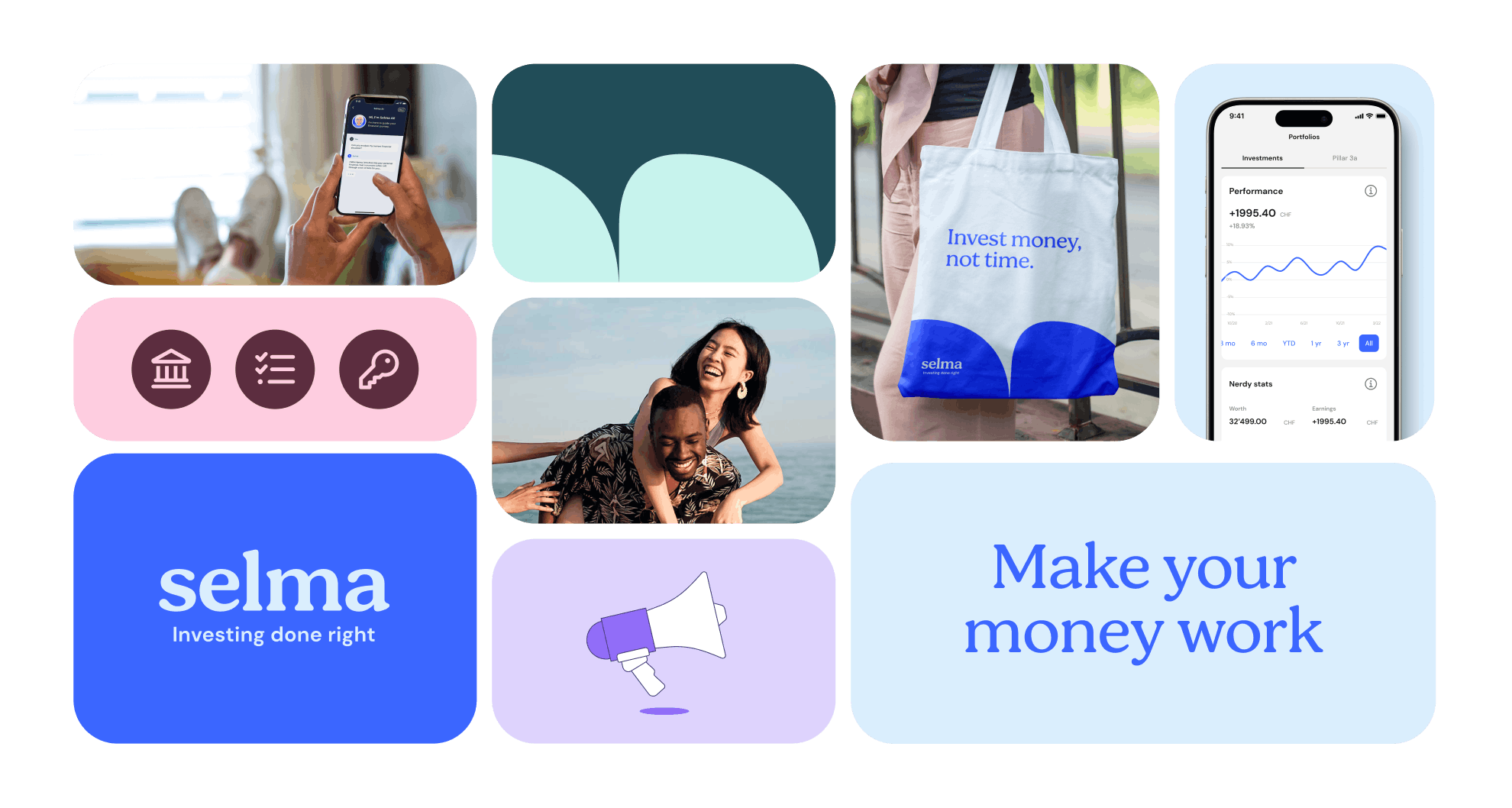 Den Aspekt der "freundlichen Finanzberaterin für alle" widerzuspiegeln, war schon immer ein Hauptaugenmerk unserer visuellen Identität – aber Selma ist so viel mehr als das. Der neue Look öffnet die Türen zu viel mehr Möglichkeiten und hebt uns von der Konkurrenz ab.